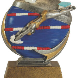 This 5-inch resin trophy features a Swimming player in action set against a detailed Swimming...
