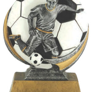 This 5-inch resin trophy features a Soccer player in action set against a detailed Soccer...