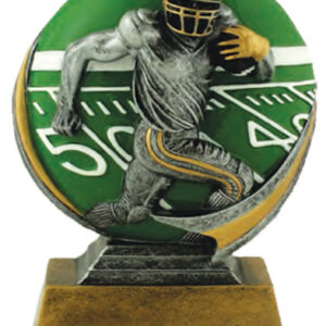 This 5-inch resin trophy features a football player in action set against a detailed football...
