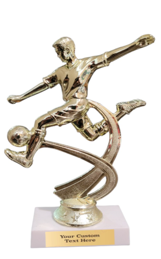Soccer Action Trophy – 6 1/2″ Gold Finish – Male Player – FREE 3 Lines Engraving